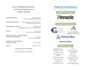 This year’s event recognized the generous contributions of Champion Sponsor Pinnacle Financial Partners, Keyholder Sponsors, and the many Friends of HCG, including Affordable Housing Management, Inc., First National Bank, Community Housing Solutions, and Dream Builders Realty. Their support fuels HCG’s work in expanding access to housing education, down payment assistance, and financial empowerment.